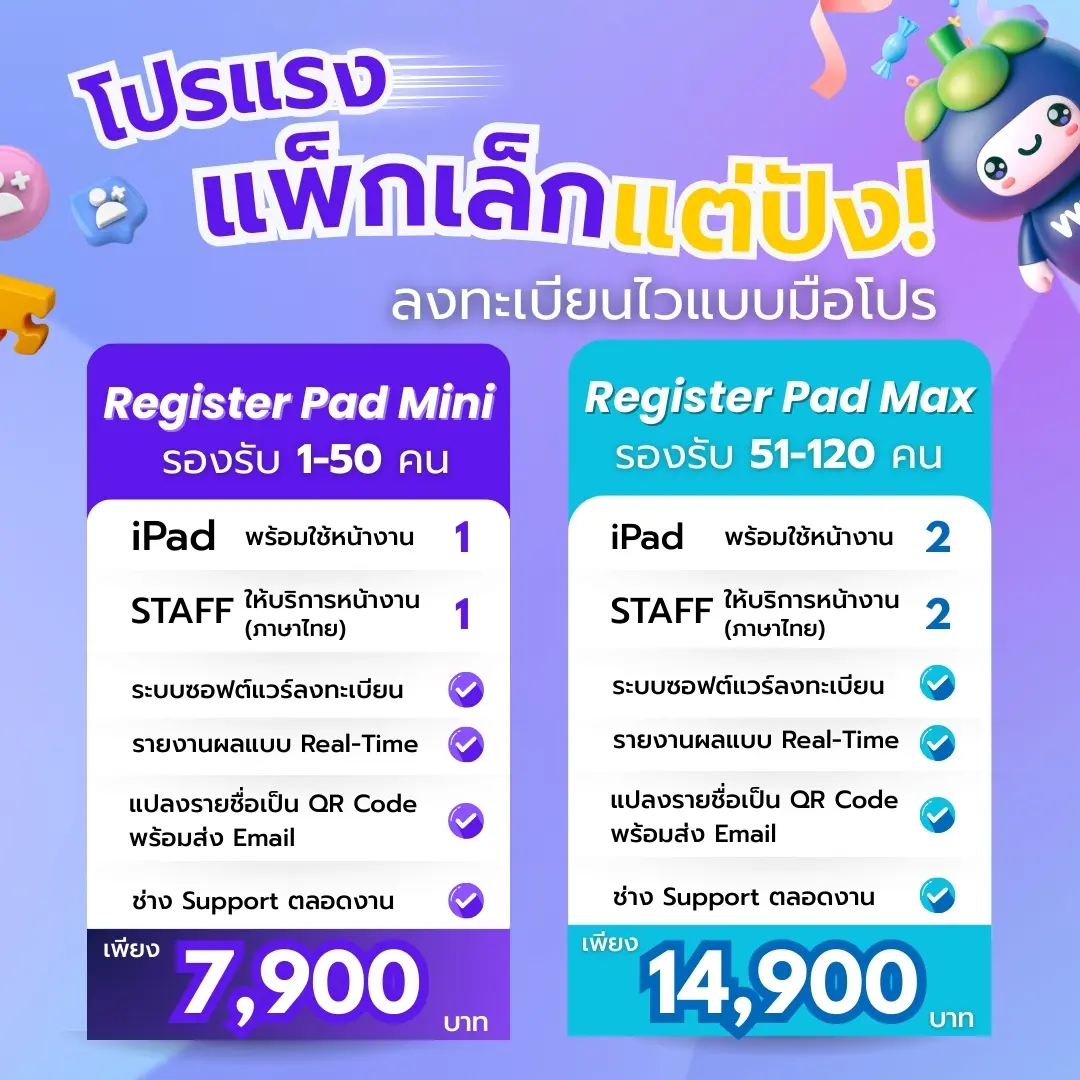 ช่วยให้การลงทะเบียนเข้าร่วมงานเป็นเรื่องง่ายและรวดเร็วมากขึ้น ไม่ต้องใช้เวลานานในการกรอกข้อมูลหรือรอคอยอีกต่อไป